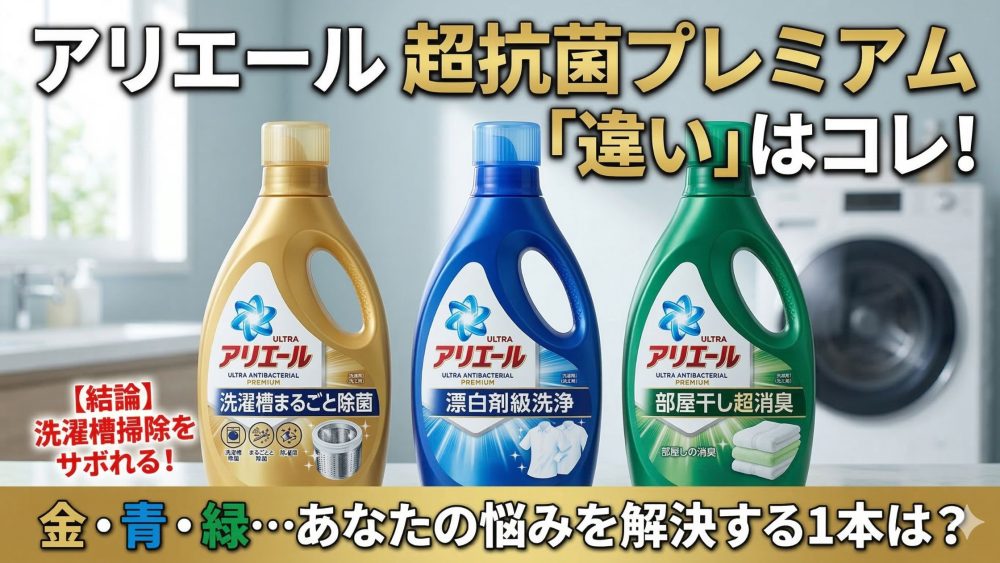 【比較】アリエール超抗菌プレミアム(金・青・緑)の違い