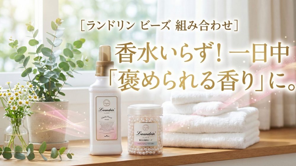 私自身も、「ランドリン クラシックフローラル」に同系統のビーズをほんの少し足して使ってみたことがあります。すると、夕方の満員電車や仕事終わりにコートを羽織った瞬間、自分の服からフワッと極上の香りが漂い、一日の疲れが吹き飛ぶほど癒やされました!香水特有のアルコール臭やキツさがないので、オフィスでも「柔軟剤なに使ってるの?」とよく褒められます。